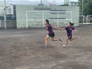 秋の大会に向けて、みんなバトンをつなぐ練習をしています。